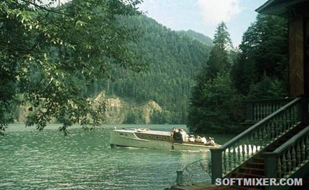На озере Рица обязательная программа включала катание на катерах.