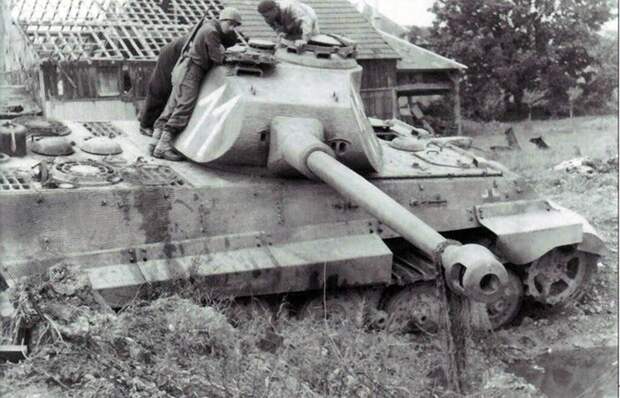 Немецким танкистам того времени тоже пришлось хлебнуть лиха с этими танками. Причём в воспоминаниях тех, кто воевал на Tiger II, встречаются и восторженные оценки, и откровенные жалобы на слабые места и недостатки. Пушка действительно поражала почти любой танк союзников ещё до того, как те могли прицелиться. Лобовая броня выдерживала попадания даже 85-мм снарядов, и на ней оставались только вмятины и сколы, а экипажи чувствовали себя почти непобедимыми, особенно в обороне и с хорошим снабжением. Вот только танкистам приходилось мириться с поломками и страхом застрять внутри. Масса в 69 тонн превращала танк в уязвимую цель на раскисших дорогах. В бою Tiger II редко шёл быстрее 20–25 км/ч, чтобы не рисковать трансмиссией, а отступление или маневренный бой превращались в проблему. Нередко экипажи бросали Tiger II из-за нехватки топлива или невозможности вытянуть застрявшую машину.