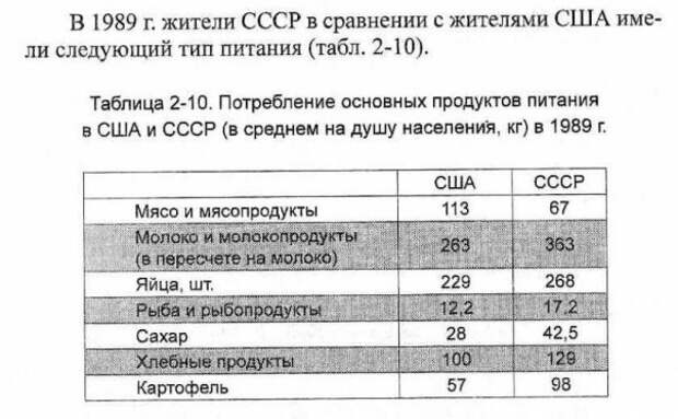Сегодня, например, у многих вызывают скепсис цифры статистики о том, что по многим видам продуктов на душу населения СССР обгонял ведущие капиталистические страны, забывая при этом о затратах на оборону.