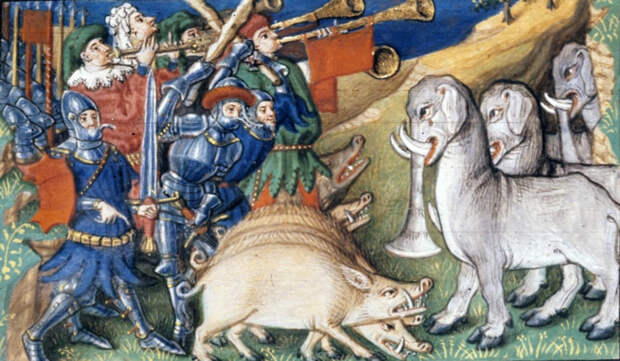 Впервые европейцы познакомились с боевыми слонами во время похода Александра Македонского на Восток. Поначалу животные наводили страх на греков и римлян, не привыкших к таким крупным животным. На поле боя слоны топтали пехоту противника, пугали вражеских лошадей, некоторые даже метали хоботом копья — одним словом, ни в чем себе не отказывали.