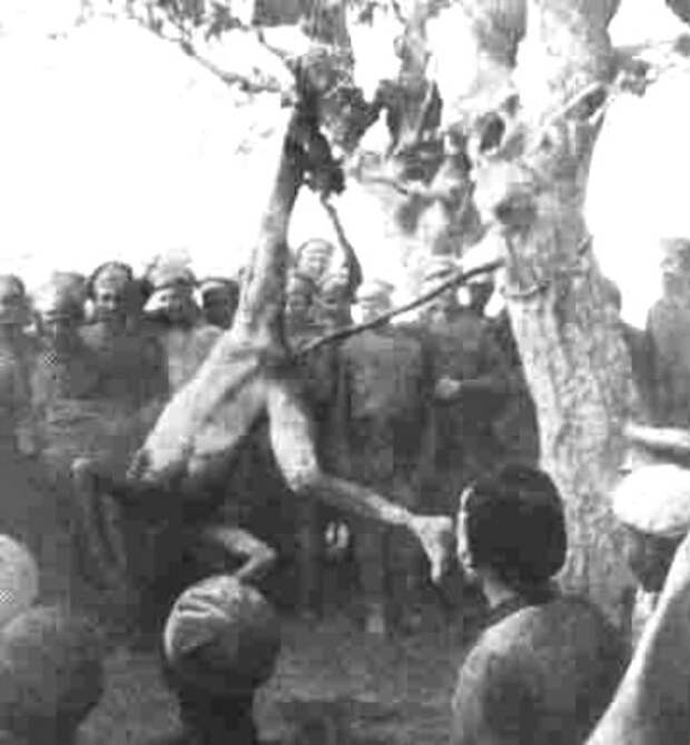 Расленённый обгоревший труп замученного, во дворе Херсонской ЧК