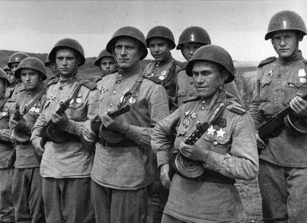 Группа бойцов РККА, прибывших на Дальний Восток. Август 1945